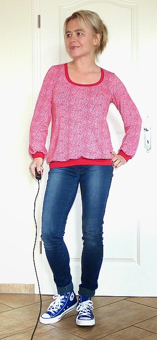 Ein Stoffcoupon vom Stoffmarkt fand hier die Verwendung. Viskosejersey, relativ dünn, nicht besonders hochwertig aber egal. Nun weiss ich, dass die Größe 38 passt und mir gefällt das Shirt so gut, dass bereits eine neue, ebenfalls schlichte Mamacita am “entstehen” ist.