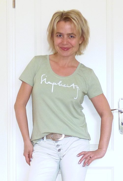 Nach dem Zuschnitt stellte ich fest, dass ich noch genügend Stoff für ein T-Shirt habe. Die Liv von pattydoo ist es wieder mal geworden. Mit einem Plottermotiv um wenigstens hier einen Akzent zu setzen.