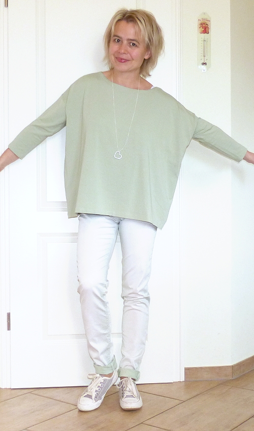 Geplant war “nur” ein Mandy Boat Tee-Shirt. Passend zu meiner mintfarbenen Sommerhose, so richtig schön oversized und luftig. Ein tolles Schnittmuster, ganz for free und super schnell genäht.