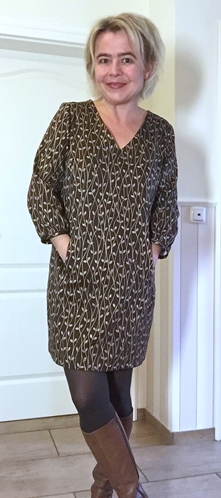Auf diversen Blogs habe ich dieses Kleid gesehen. Eine Bloggerin hat darüber geschrieben: “Ich habe mir einen Sack genäht, aber einen netten Sack”. Das trifft auf dieses Kleid hundertprozentig! Man fühlt sich gleich wohl obwohl es doch so gar keine richtige Form besitzt…
