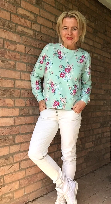 An dieser Stelle möchte ich mich als Fan von Milliblu`s-Stoffen outen. Ich mag die außergewöhnlichen Designs und die Qualität ist einfach fantastisch. Bereits hier habe ich ein T-Shirt aus der aktuellen Kollektion gezeigt, bei meinem heutigen Sweater kam der French Terry “Aquarel Flower” zum Einsatz.
