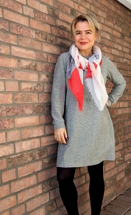 Was habe ich diesmal noch verändert? Nur die Länge der Ärmel. Ich wollte ein Kleid mit langen Ärmeln, wenn ich ehrlich bin, dann mag ich diese 3/4-Varianten nicht besonders. Ich habe ständig das Gefühl, dass ich nicht richtig angezogen bin und bin nur am zupfen.